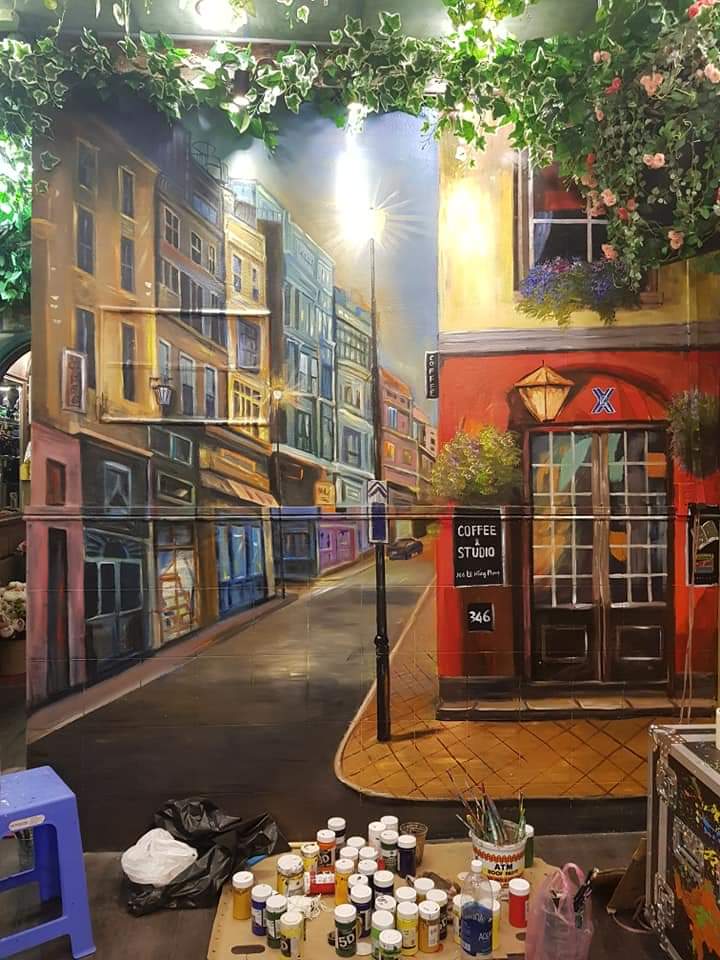 Vẽ Tranh Tường là hình thức họa sĩ sử dụng sơn chuyên dụng Acrylic để vẽ lên tường, trần nhà, quán cafe, trà sữa …  Các họa sĩ sáng tạo nên các hình khối tranh không gian, các hiệu ứng ánh sáng và mô hình hóa tự tế hình ảnh một cách sống động. Khi người nhìn vào bức tranh như nhìn thấy hình ảnh 3 chiều và nhìn thấy hỉnh ảnh chân thực như lạc vào không gian 3 chiều.
